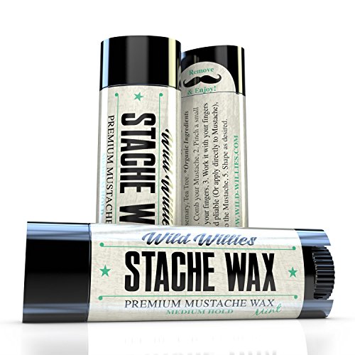 Wild Willies Mustache Wax TO GO Cool Mint .25 oz 3 pack - The Only Hard Wax with 7 Natural Organic Ingredients for All Day Hold While Treating Your Mustache at the Same Time