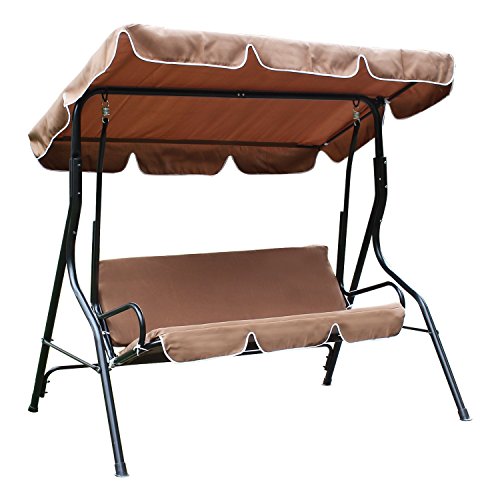 Homebeez Outdoor Chair Canopy Awning Porch Swings Bench, for Two or Three People Brown/Coffee