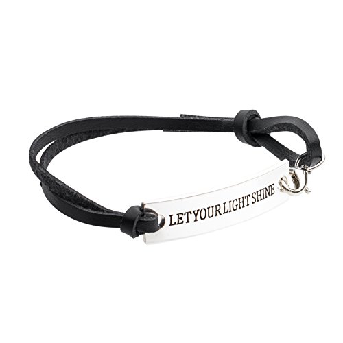 Inspirational Jewelry Bracelet – Let Your Light Shine Quote – Silver Charm Wrap – Engraved Sayings for Inspiration, Motivation for Women, Men, Teens, Girls.