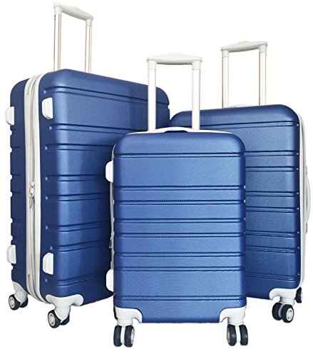 3pc Luggage Set Hardside Rolling 4wheel Spinner Upright Carryon Travel Blue