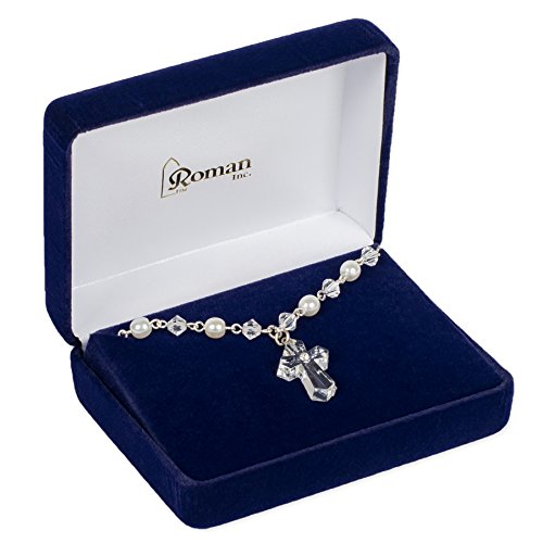 Glass Cross Charm with Pearl Color Beads 5.5 inch First Communion Bracelet
