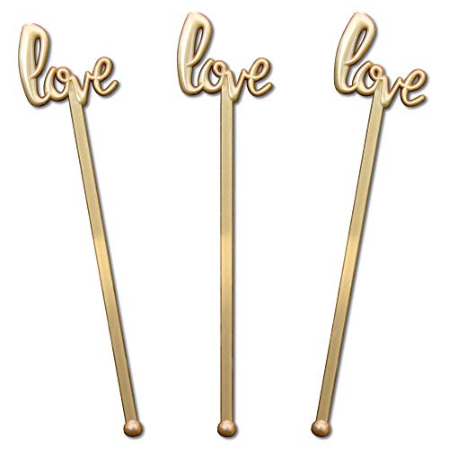 Royer Stir Sticks, Swizzle Sticks, Drink Stirrers in Love Script for Weddings, Bridal Showers, Valentine's Day - Gold, 6 inch Plastic, Set of 48, Made in USA