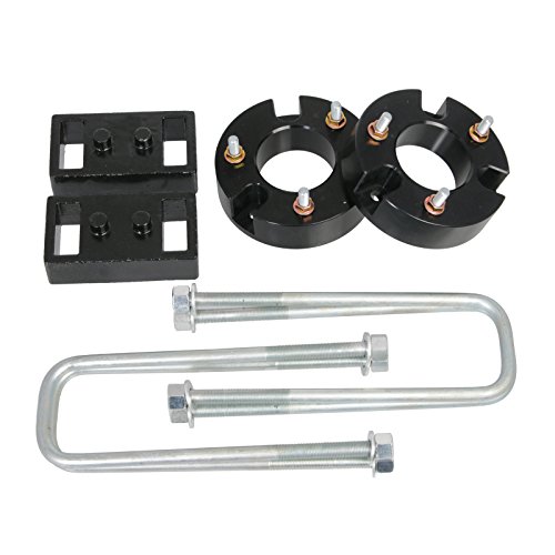 Leveling Kit Combo with UBolts - 2.5 inch Front and 1.5 inch Rear Lift - Compatible with 2004-2015 Ford F150 F-150 - U-Bolts Black Front Spacers and Rear Blocks