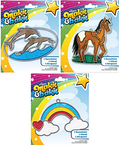 Suncatcher Kits - Dolphins (1), Horse (1), Rainbow with Clouds (1) - by Makit & Bakit / Colorbok - sun catcher stained glass art project for kids - Boys, girls, and children 8 years & up - Bundle of 3