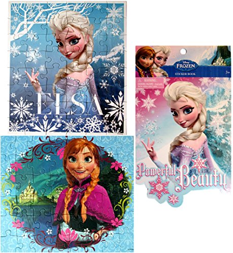 Disney Jigsaw Puzzles for Children- Frozen Puzzle for Kids, Princess Anna & Elsa – 48 Piece Puzzles with Frozen Sticker Book (2 Puzzles & 1 Sticker Book – Pack of 3)