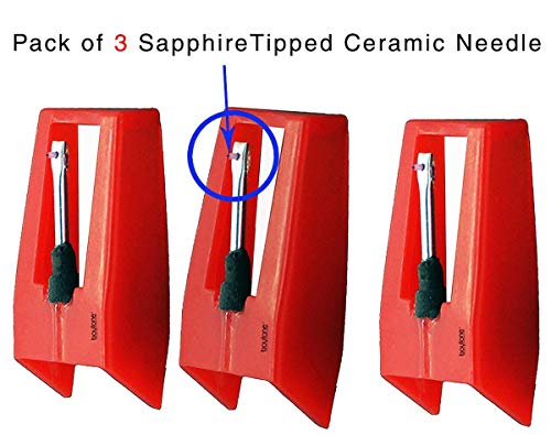 Boytone Pack of 3, Sapphire Tipped Ceramic Replacement Needle for Turntables