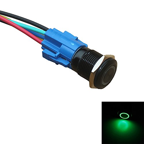 ESUPPORT 16mm 12V 3A Car Green LED Light Angel Eye Metal Push Button Toggle Switch Socket Plug Latching Black Shell