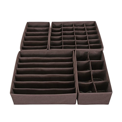 SONGMICS Closet Underwear Organizer Drawer Divider for Bras Panties Socks Ties, Set of 4, Brown URUS04K