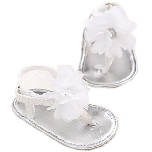 LINKEY Infant Baby Girls Summer Flower Soft Sole Sandals Flip Flops Beginer Walker Shoes Silver Size M