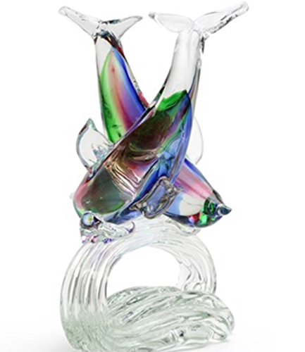 Dynasty Gallery Art Glass Dancing Rainbow Dolphin Figure 8"
