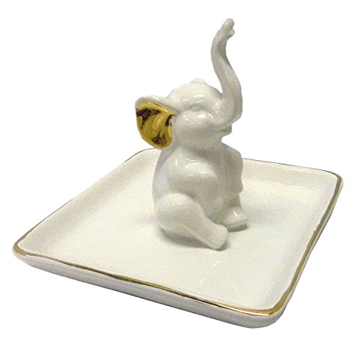 Elephant Ceramic Ring Holder on Gold Edge Tray