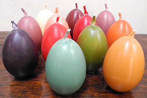 Pure Beeswax Egg-shaped Candles (12 Candles), Hand-Dipped, 2" tall by 1.5" diameter, unscented, Assorted Colors