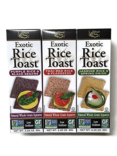 Edward & Sons Exotic Rice Toast, Jasmine Rice & Spring Onion, Purple Rice & Black Sesame, Thai Red Rice & Flaxseeds, 2.25-Ounce Boxes [1 of Each]