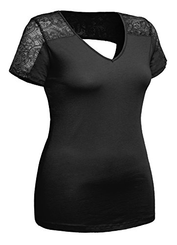 Women's V Neck Short Sleeve Lace Mesh Inset Top