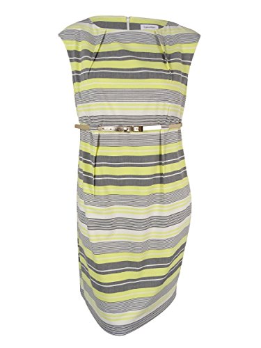 Calvin Klein Women's Plus-Size Belted Striped Sheath Dress, Canary Multi, 22W