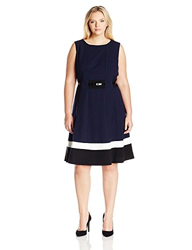 Calvin Klein Women's Plus Size Fit and Flare Color Block with Belted Waist, Black/Multi, 20W