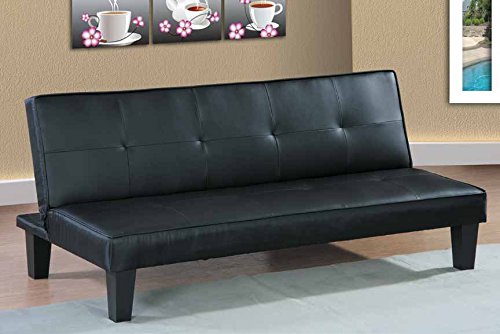 Modern Faux Leather Convertible 3 Seater Sofa / Futon Couch Klik Klak Bed Guest Bed Black