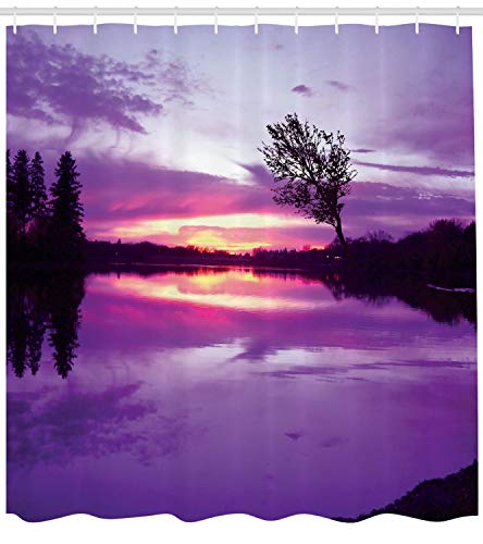 Ambesonne Landscape Shower Curtain, Abstract Composition with Purple Shade Skies and Tree Silhouettes, Cloth Fabric Bathroom Decor Set with Hooks, 70" Long, Purple Orange