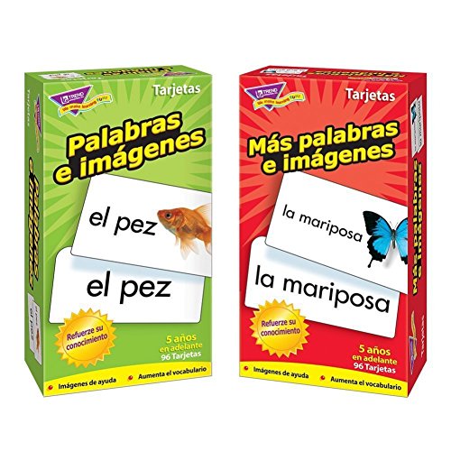 Spanish Flash Cards from Trend Enterprises, Picture Words & More Picture Words / Palabras e imágenes & Más palabras e imágenes -- Skill Drill Flash Cards -- Bundle of 2 Items by Trend Enterprises