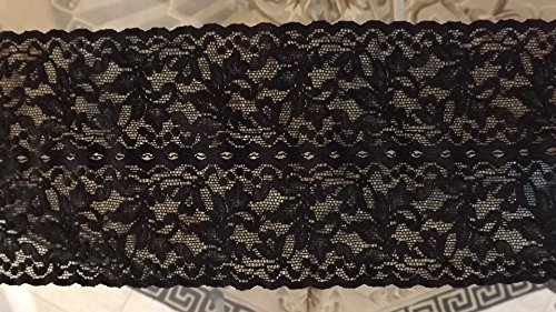 15 Yards Embroidered Black Floral Stretch Lace 4 1/2" Wide