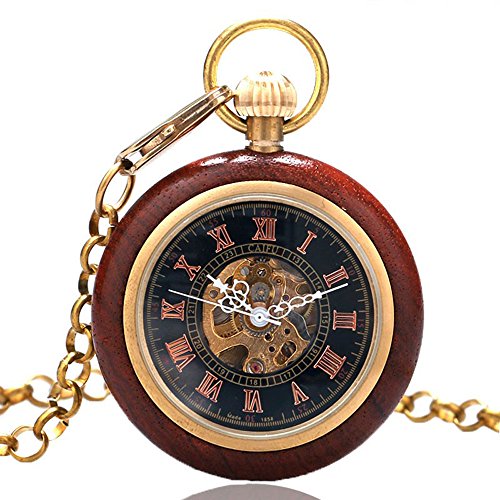 R-timer Roman Copper Wood Ring Hollow Mechanical Pocket Watch Retro Fob Steampunk Open Face Design for Men and Women