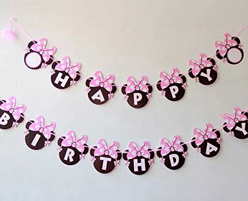 Efivs Arts Cartoon Minnie Bow Happy Birthday Party Supplies Decoration Banner(Round)