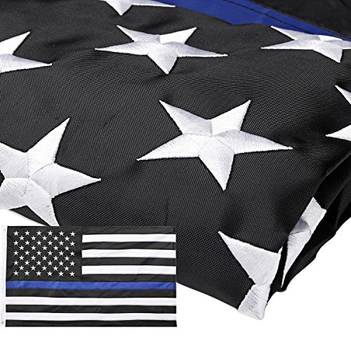 Homdox Thin Blue Line Flag 3x5 Ft with Embroidered Stars Sewn Stripes Blue Lives Matter Flag for Police and Law Enforcement Officers