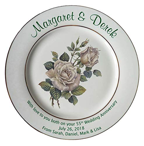 Heritage Pottery Personalized Bone China Commemorative Plate for A 55th Wedding Anniversary - Wedding Bells Design with A Plain Rim