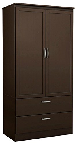 Contemporary Wardrobe Armoire Wood - with Framed Doors and Streamlined Drawers - Features Three Storage Spaces, Two Adjustable Shelves - Nickel Finish Metal Handles (Chocolate)