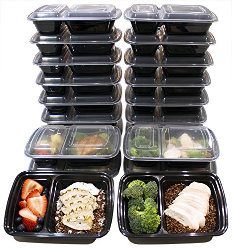 Misc Home [20 Pack] 32 Oz Two Compartment Meal Prep Containers BPA-Free [Black]