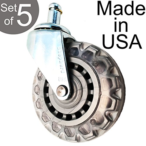 Set of 5 Rollerblade Style Office Chair Caster Wheels for Hard Floors 3" Diameter, 7/16" Diameter x 7/8" Length Grip Ring Stem, Made in USA will NOT Yellow