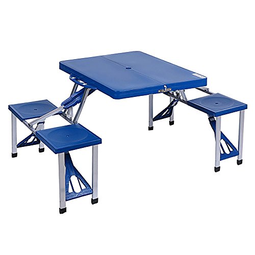 Ancheer Portable Folding Outdoor Camp Suitcase Picnic Table 4 Seats Blue