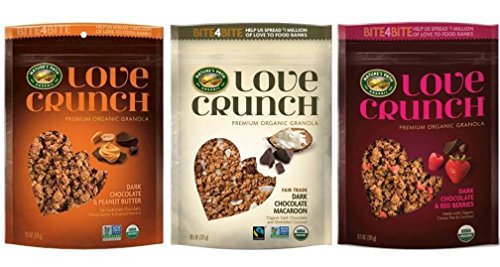 Love Crunch Premium Organic Granola Chocolate Lovers 3 Flavor Variety Bundle: (1) Dark Chocolate & Red Berries, (1) Dark Chocolate & Peanut Butter, & (1) Dark Chocolate Macaroon, 11.5 Oz Ea (3 Bags)