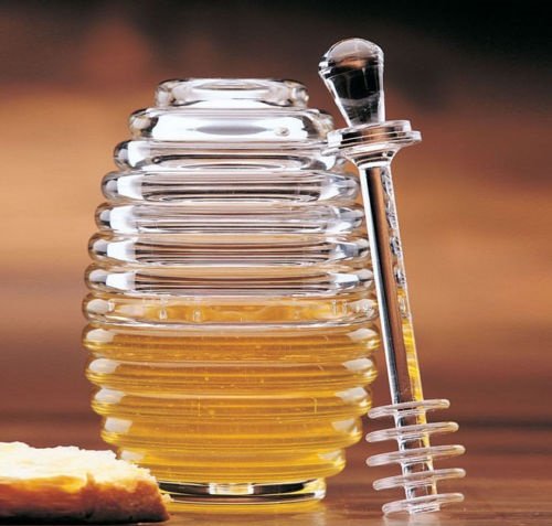 Clear Acrylic Bee Hive Honey Jar Pot with Lid Server Dipper Dripper Gift