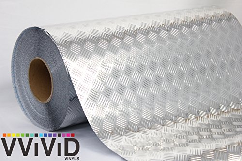 Industrial Utility Diamond Plate Metallic Chrome Finish Vinyl Wrap Sheet Roll Adhesive Roll (17.8 Inches x 3ft)