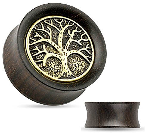 Tree of Life Organic Ebony Wood Saddle Tunnel Ear Plugs Ear Gauges - Sold As Pair