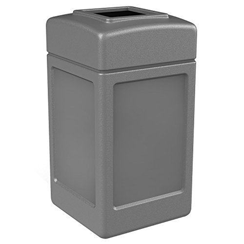 Trash Can, Garbage Commercial Square Waste Container, Open Top Lid, Polyethylene, 42-gal, Gray, Industrial