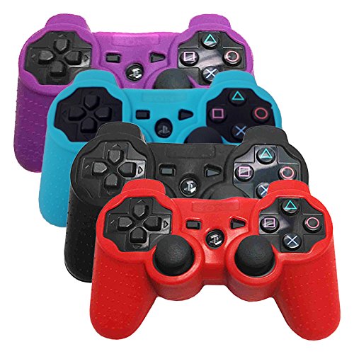 HDE Controller Skins for Sony PS3 4 Pack Combo Silicone Rubber Protective Grip for Sony PlayStation 3 Wireless DualShock Game Controllers (Purple, Blue, Black, Red)