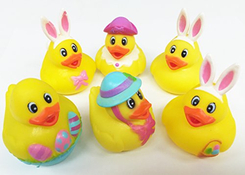 GiftExpress 12pcs Easter Rubber Ducks/Bunny Rubber Ducks Perfect for Easter Egg Hunt/Easter Baskets/Easter Festival/Easter Centerpiece/pre-School Parties/Cake Toppers
