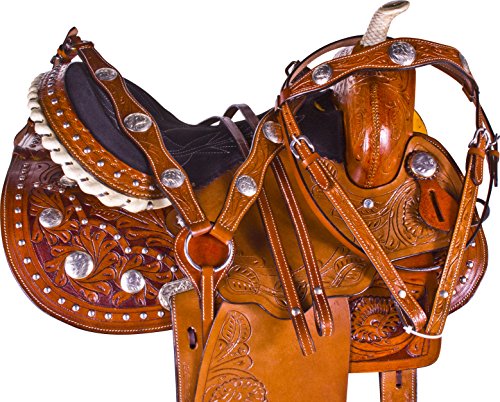 WESTERN GAITED BARREL RACING PLEASURE TRAIL SHOW HORSE LEATHER SADDLE TACK SET 14 15 16
