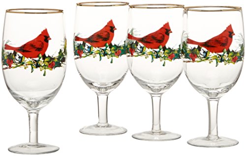 Lenox Winter Greetings Cardinal Iced Beverage Glasses (Set of 4), Clear