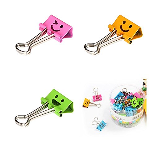 Echolife Cute Small Smilling Binder Clips Assorted Colors Paper Clips, 40 Clips Per Tub 3/4 Inch