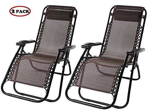 Lounge Chair Zero Gravity Deck Chair Folding Reclining Patio Chair Set of 2(Brown)