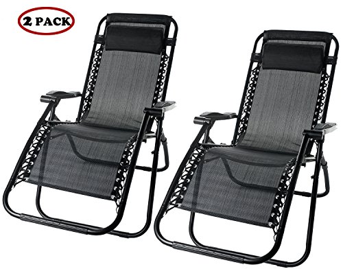 LZ LEISURE ZONE Merax Lounge Chair Zero Gravity Deck Chair Folding Reclining Patio Chair Set of 2(Black)