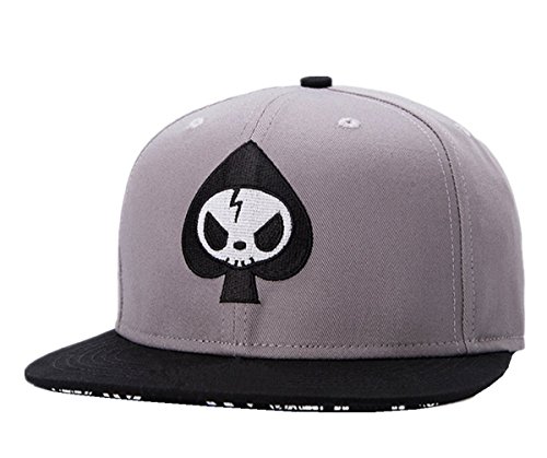 Connectyle Mens Skull Embroidery Fitted Flat Bill Hats Cool Snapback Hip Hop Cap, Medium, Grey