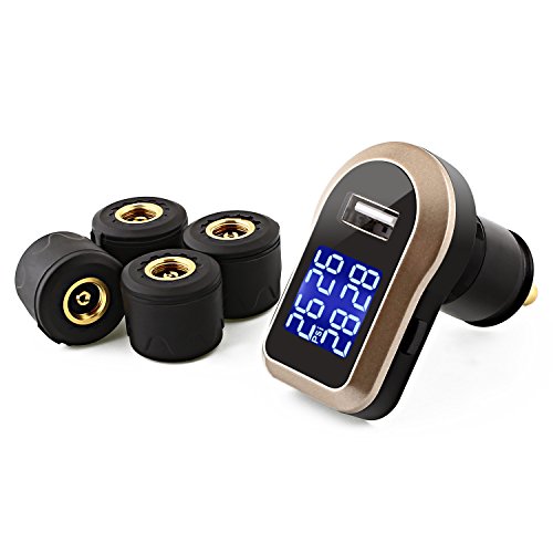 SNAN Tire Pressure Monitoring System, Wireless TPMS with Alarm Function and USB Interface, Tire Pressure and Temperature Gauge with 4 External Sensors