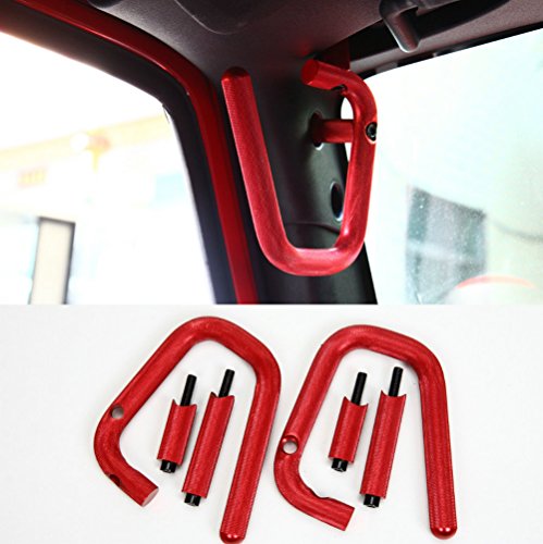 New Laster [Upgrade 2016 Version] Aluminium Alloy Antiskid Font Grab Bar Front Handle for Jeep Wrangler JK 2 & 4 Door 2007-2016 (Red)