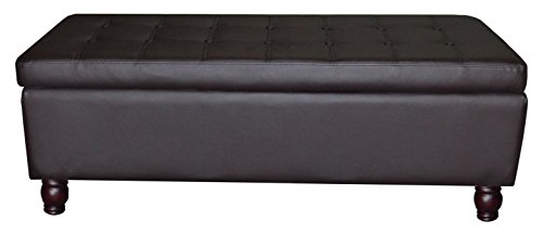 US Pride Furniture Bonded Leather Tufted Storage Ottoman Bench, Brown