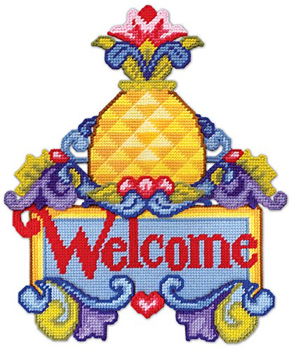 Design Works Crafts 15" x 18" Plastic Canvas Wall Decor, Pineapple Welcome