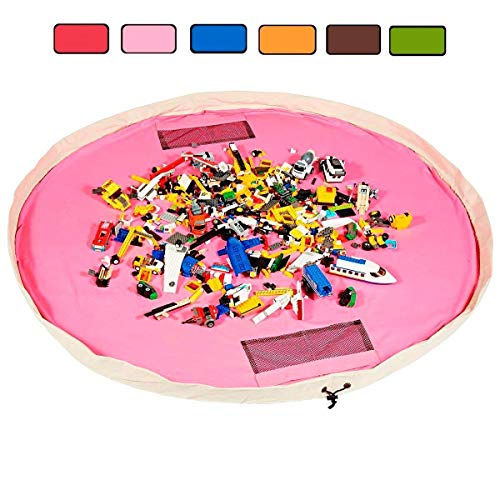 Block Bag Toy Storage Activity Play Mat Organiser Large 60 inch Soft Cotton (Pink)